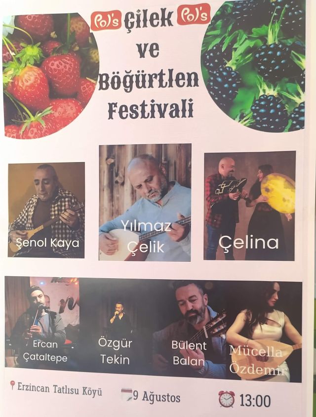 Doğanın en lezzetli armağanları olan çilek ve böğürtlenin kutlanacağı bu özel festivalde, ziyaretçileri dolu dolu bir program bekliyor. Festival sahnesinde birbirinden değerli sanatçılar yer alacak. Şenol Kaya, Yılmaz Çelik, Çelina, Ercan Çataltepe, Özgür Tekin, Bülent Balan ve Mücella Özdemir gibi isimler, katılımcılara müzik ziyafeti sunacak.