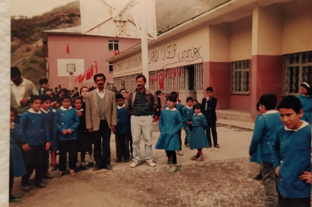 Hasan Doğan (sağda), Pülümür Kırmızıköprü Yatılı İlköğretim Bölge Okulunda.