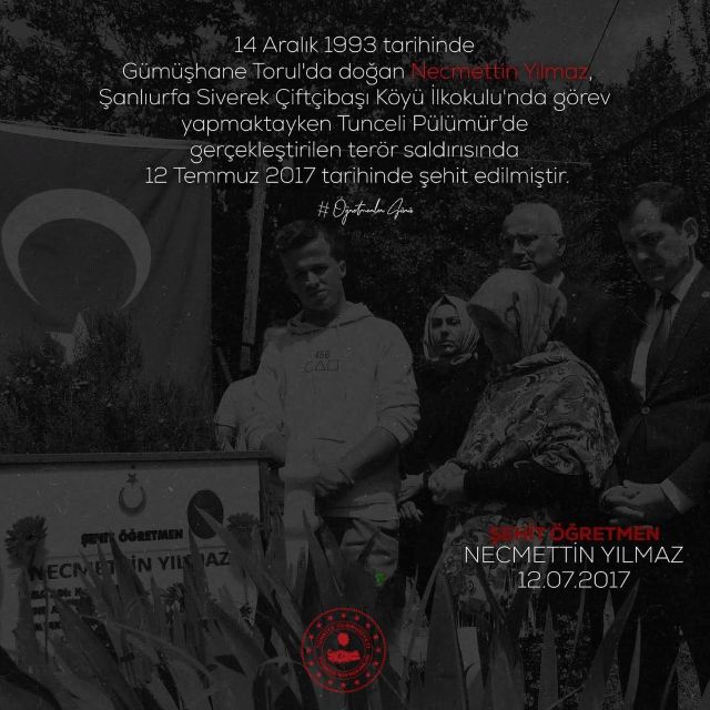 Kaymakam Çolak, mesajında tüm öğretmenlerin gününü kutlarken, şehit öğretmen Necmettin Yılmaz’ı da andı. Çolak, “Başöğretmenimiz Mustafa Kemal Atatürk başta olmak üzere tüm öğretmenlerimizin Öğretmenler Günü kutlu olsun. Öğretmenler Günün kutlu olsun Şehit Öğretmen Necmettin Yılmaz. Unutmadık, unutmayacağız.” ifadelerini kullandı.