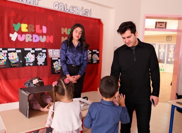 “Kaymakamımız Sayın Mehmet Anıl Çolak, Yerli Malı Haftası etkinlikleri kapsamında ilkokul ve anaokulu öğrencilerimizle bir araya gelerek etkinliklere katılım sağladı.”
